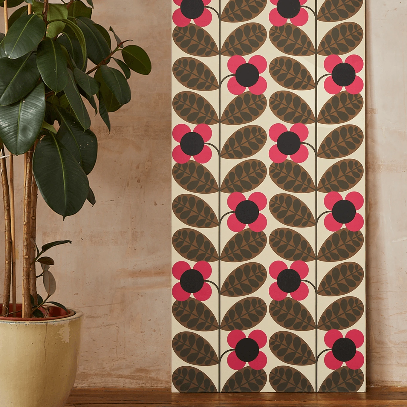 The Botanica bloom print transforms Orla’s Solid Stem into a nesting doll of Stem, featuring explosions of fuchsia pink flowers emerging through the leaves.