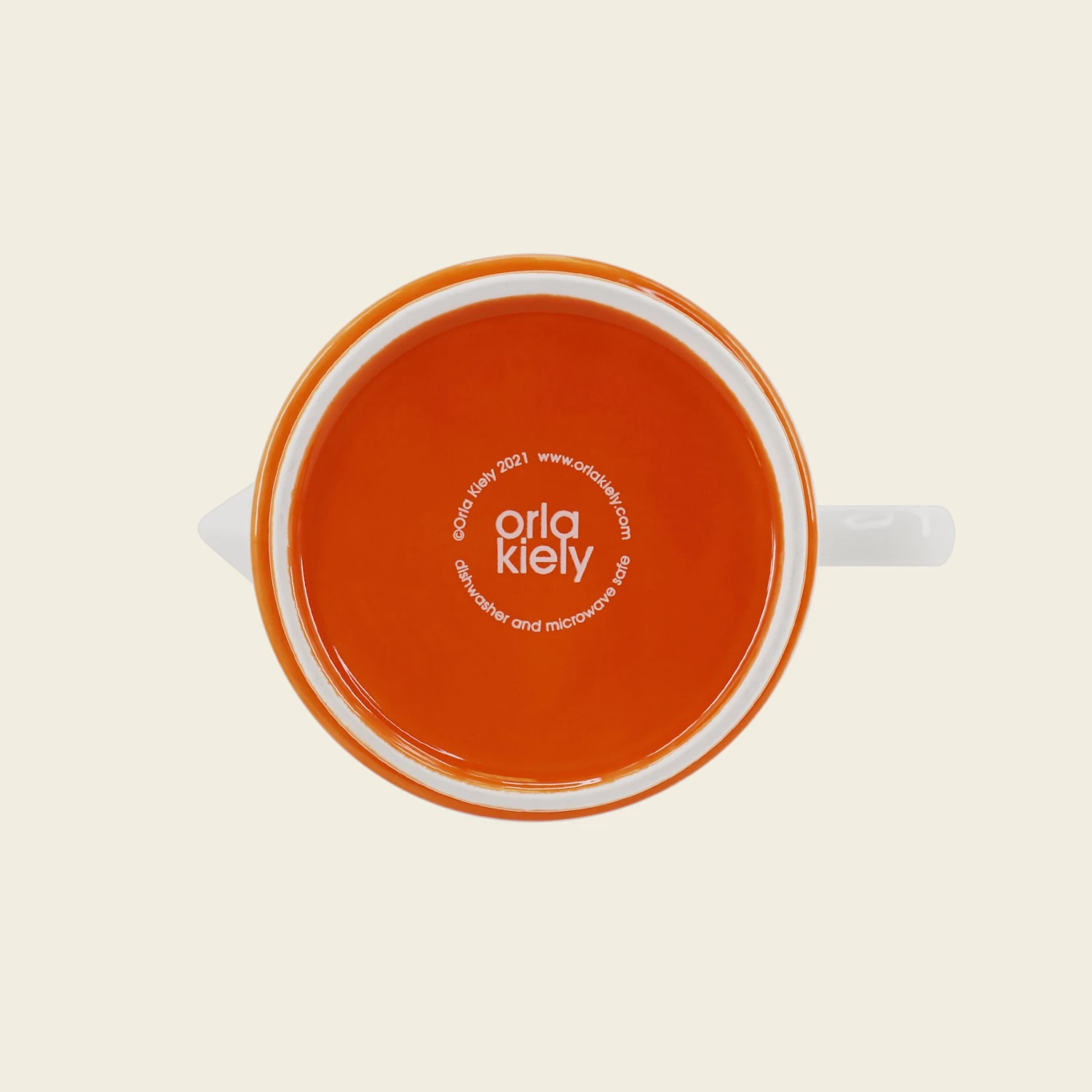 Our lovely ceramic water pitcher is that perfect size for your favourite juice or water. Printed in our Block Flower print in Navy blue and contrast orange bottom.