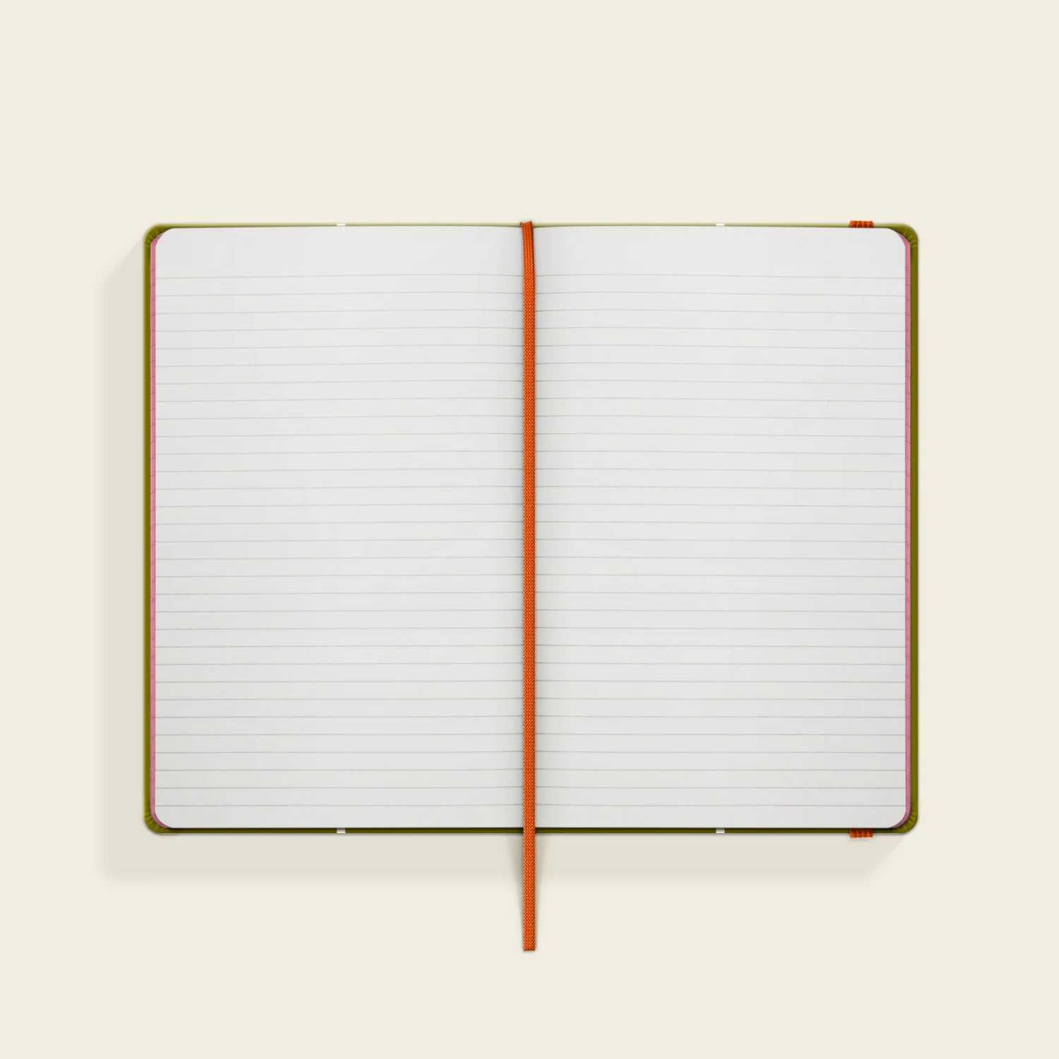 Write down your goals, plans and your weekly shopping list in style with our Linear Stem notebook. This notebook has a hardcover with rounded corners, an elastic closure and matching ribbon bookmark. Comes with a lined paper layout and expandable inner back pocket.